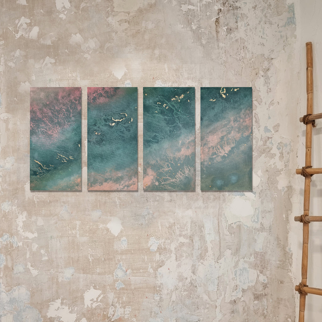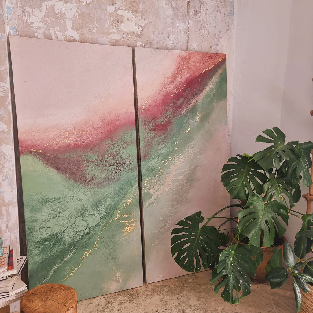 Explora la esencia orgánica de los elementos naturales en el momento de floración. Como un amanecer etéreo en el que el despertar de los colores y la humedad de los tonos generan un estado sereno de contemplación infraleve, fugaz y momentáneo. El suave brillo de los cristales de pintura como el leve rocío que desaparece o las texturas fractales de las estructuras orgánicas.